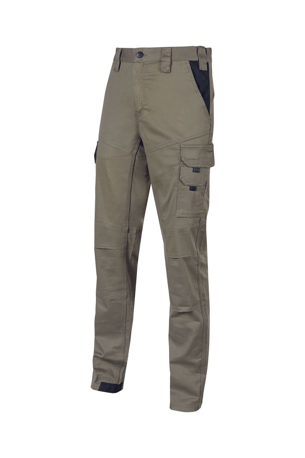 Il design con ginocchia preformate favorisce la libertà di movimento, mentre la fettuccia porta martello aumenta la praticità durante il lavoro. Il fondo del pantalone è rinforzato con battitacco per una maggiore durata nel tempo.
