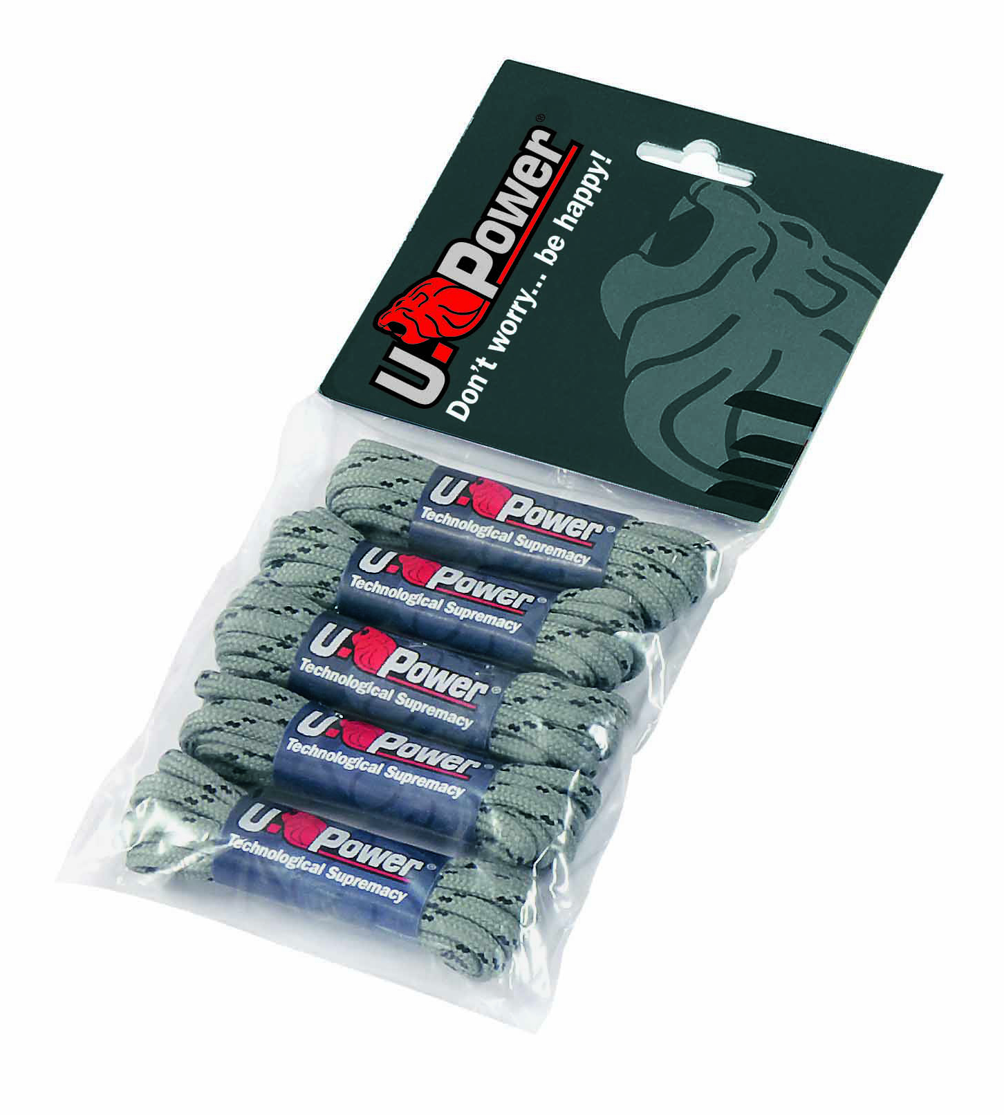Confezione da 5 paia di stringhe U-Power colore grigio/nero, lunghezza 120 cm.