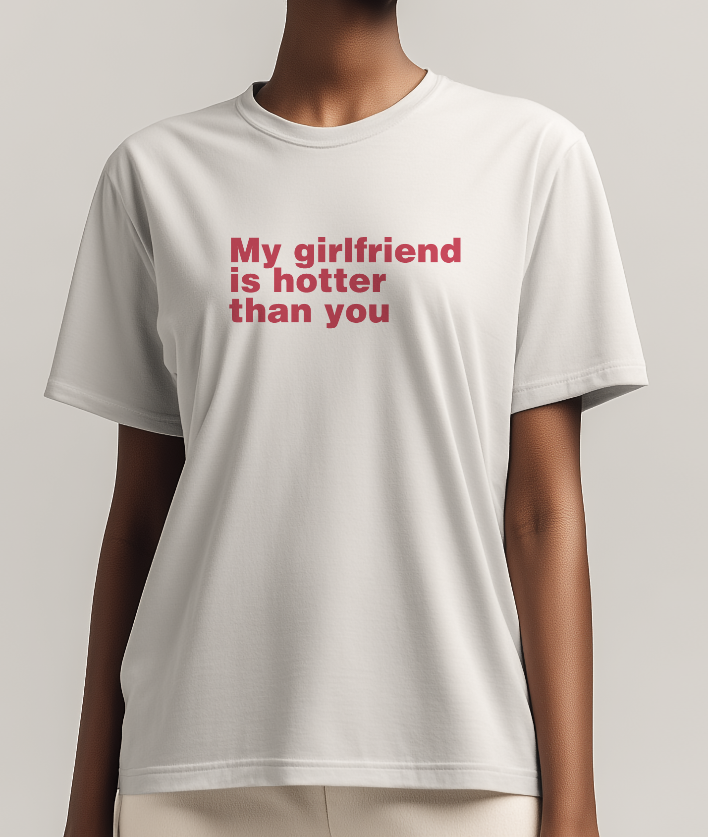 T shirt – “MY GIRLFRIEND IS HOTTER…”
